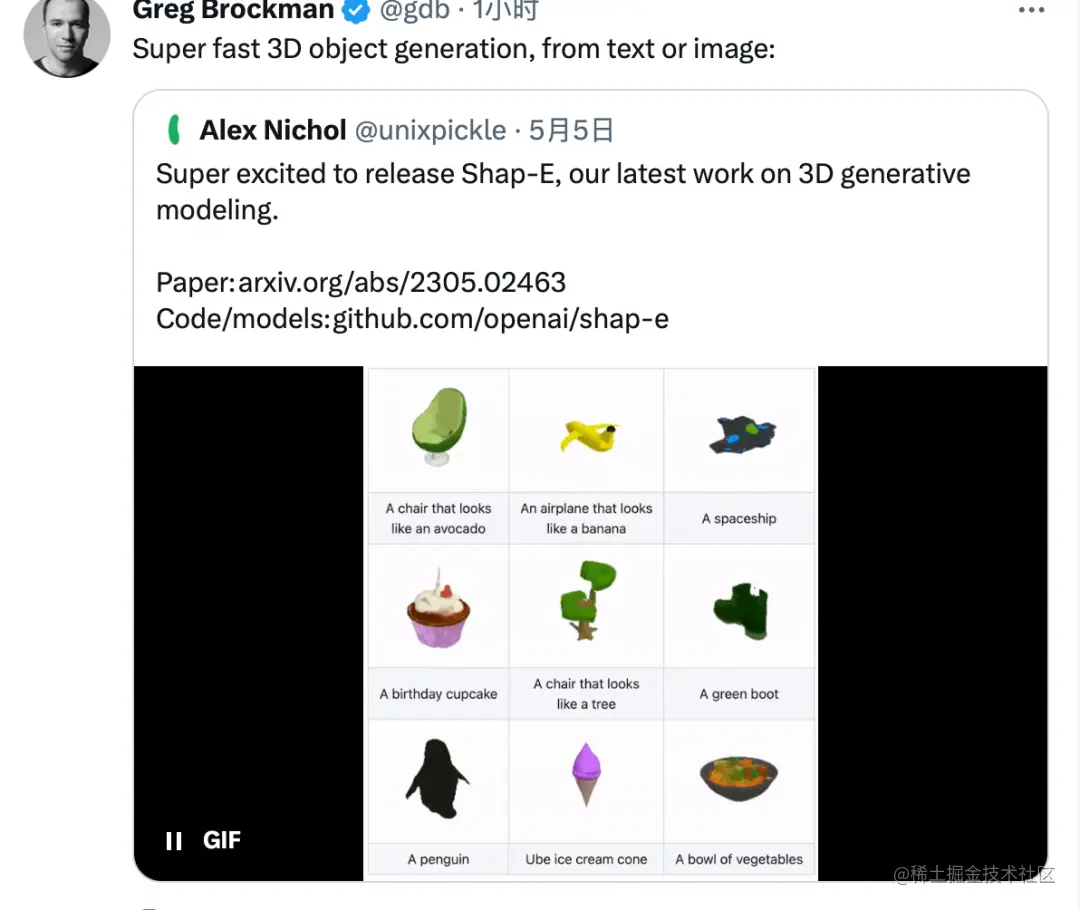 2023年5月6日,OpenAI悄悄的发布了文字生成3D的模型Shap.E,并且在Github上开源的模型。