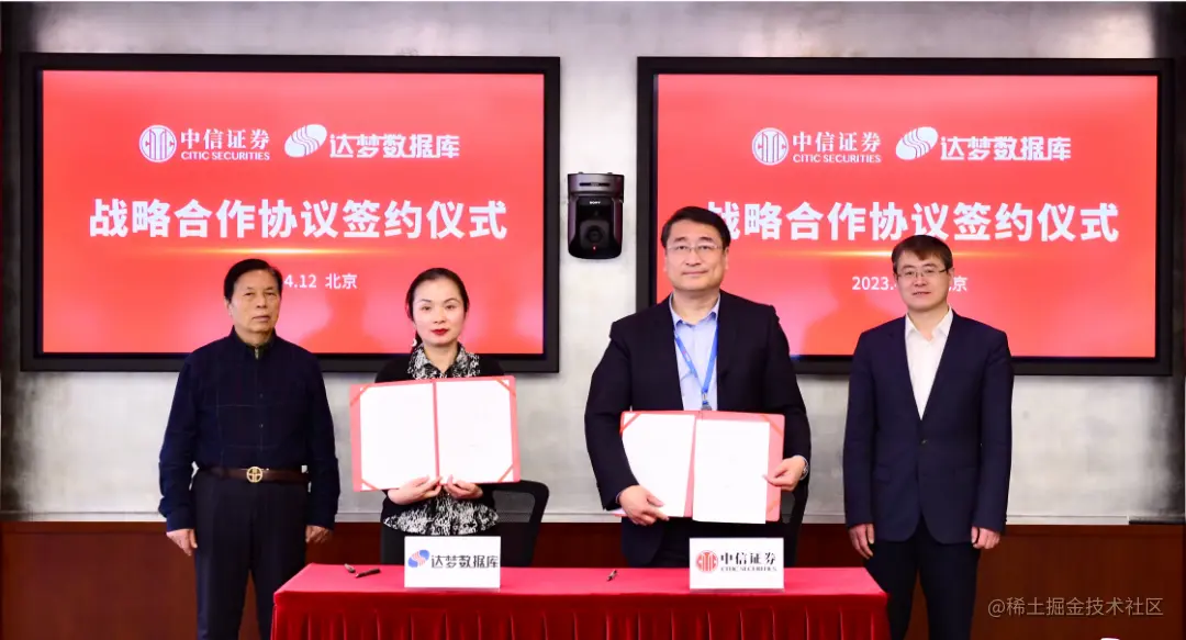 4月12日,达梦数据与中信证券签订战略合作协议。双方将以此次战略合作为契机,在信息数据化服务、信息系统示范实验室建设等方面加强全面合作,聚合优势力量、共谋长远发展。