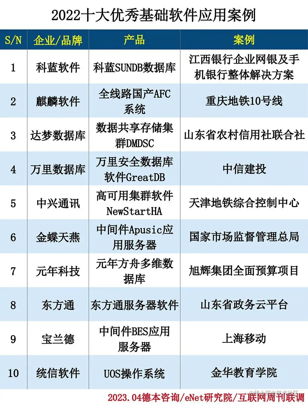 4月19日,由中国科学院主管的《互联网周刊》、eNet研究院、德本咨询联合发布《2022十大优秀基础软件应用案例》,中国自主创新品牌科蓝SUNDB数据库凭借江西银行企业网银及手机银行整体解决方案,荣登“2022十大优秀基础软件应用案例”第一名。