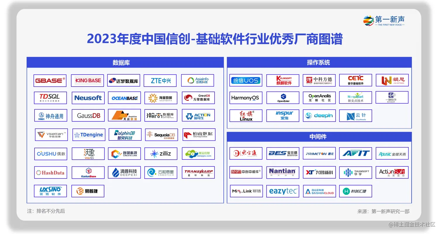 4月19日,第一新声研究部正式发布了《2023年度中国信创-基础软件行业优秀厂商图谱》。