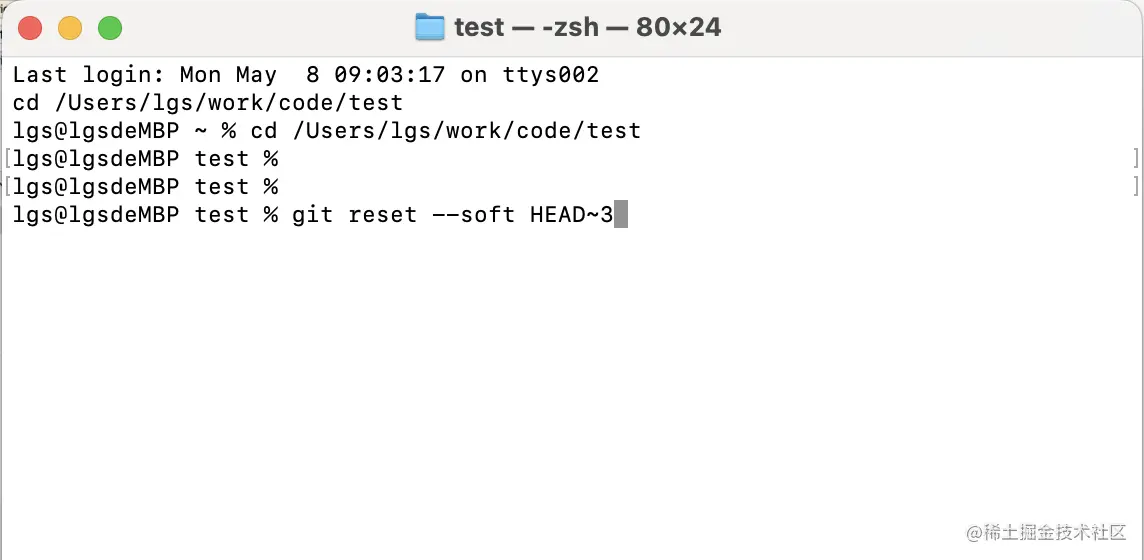 git reset --soft HEAD~3