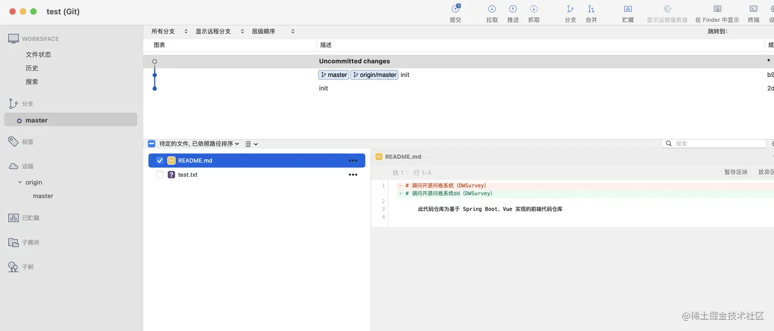 跟踪远程分支:当未跟踪时表示本地没有和远程建立分支的联系