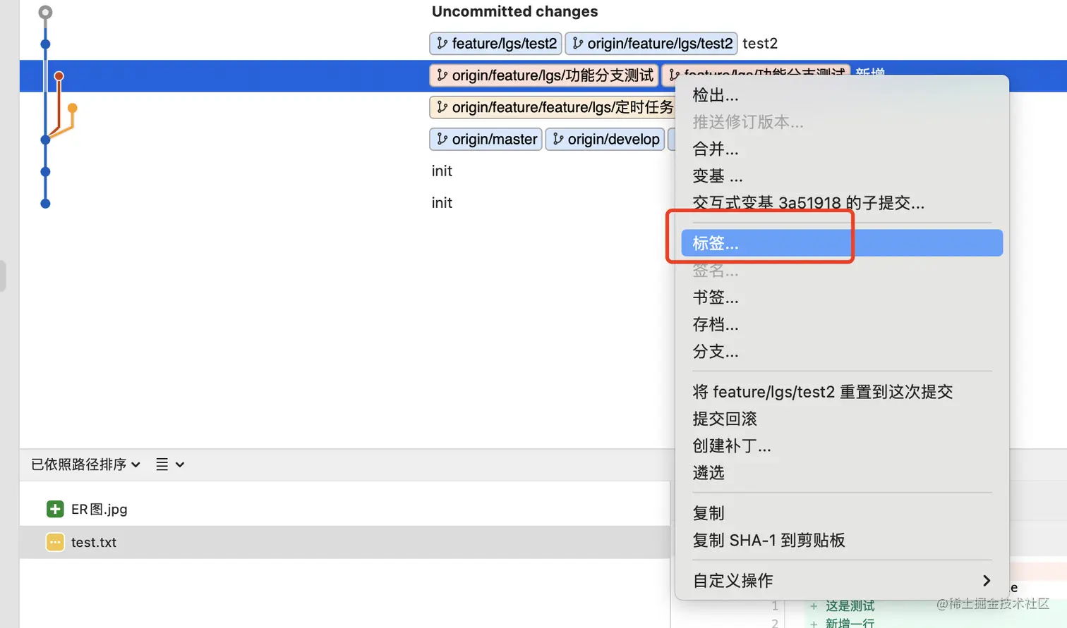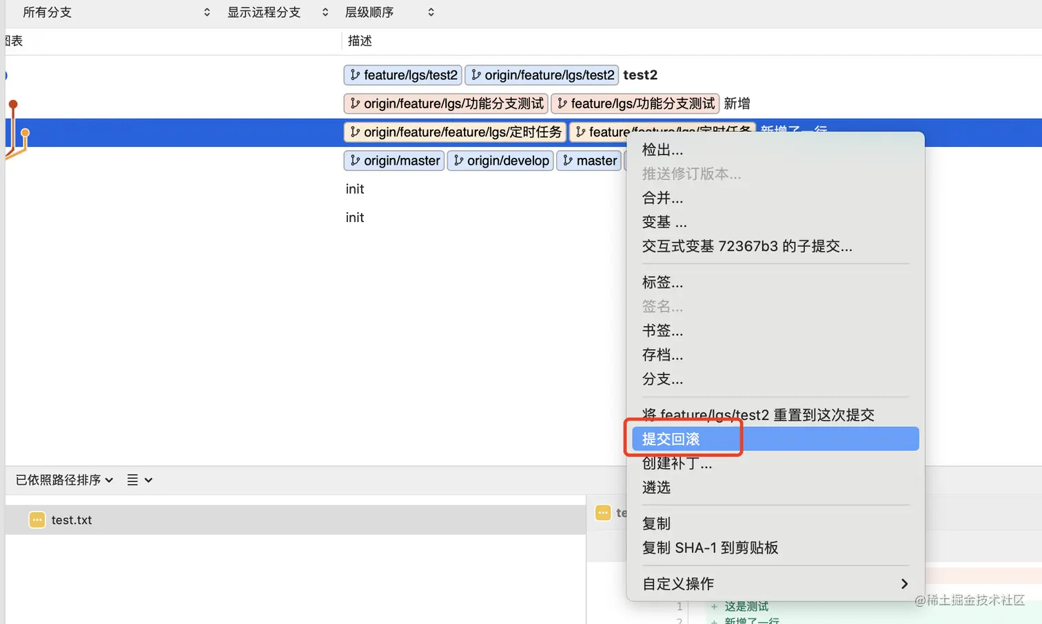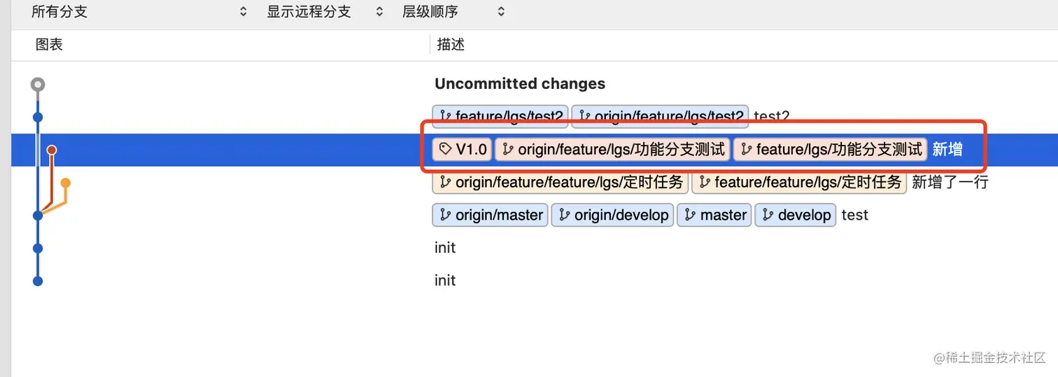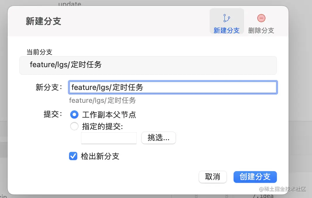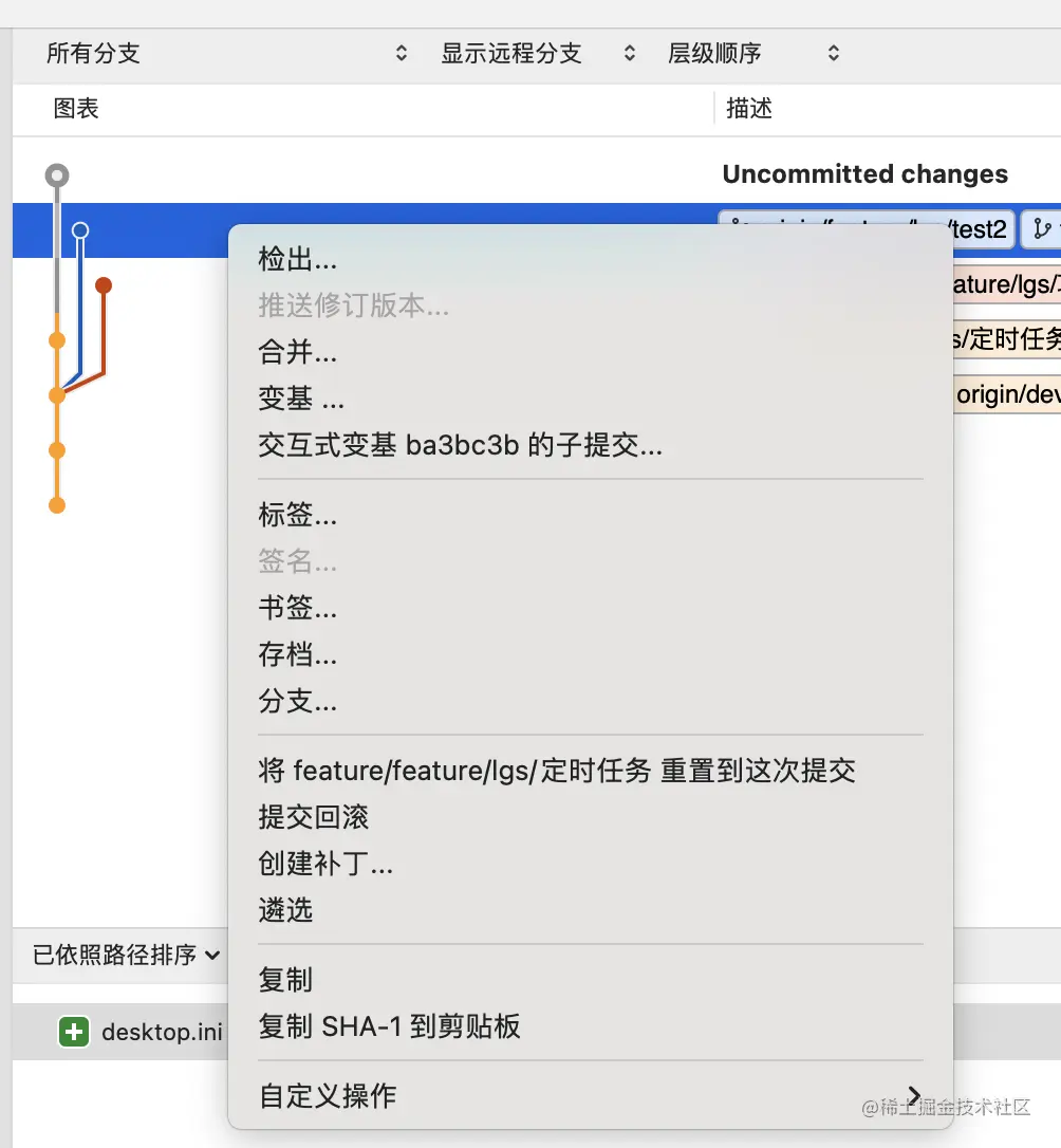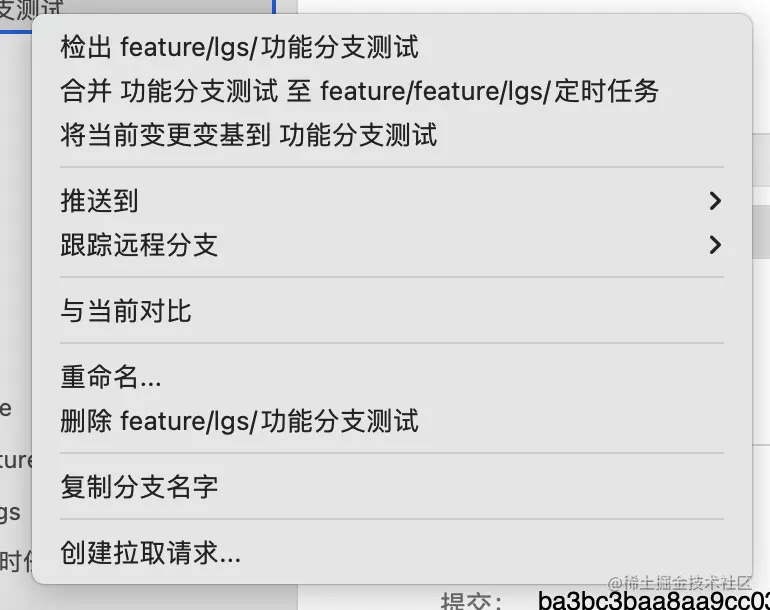 在分支上右键由以下功能