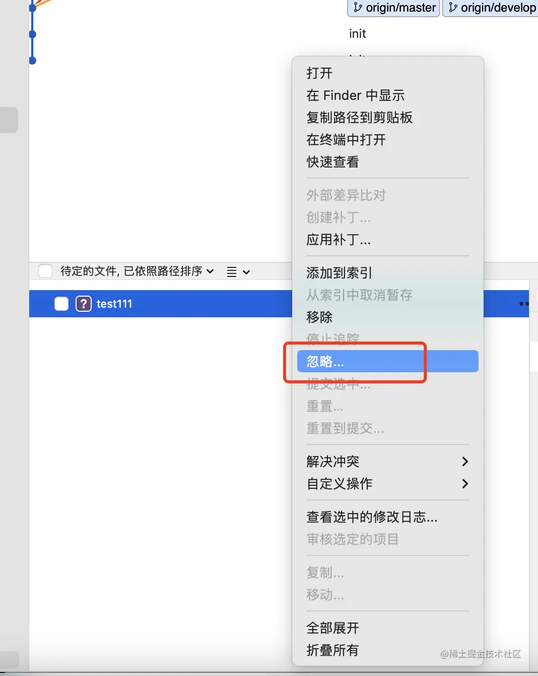 注意:需要说明的是忽略文件,只能忽略未跟踪文件,如果已跟踪文件(之前被提交过),需要先将这些文件删除后,提交代码库,再次忽略文件。