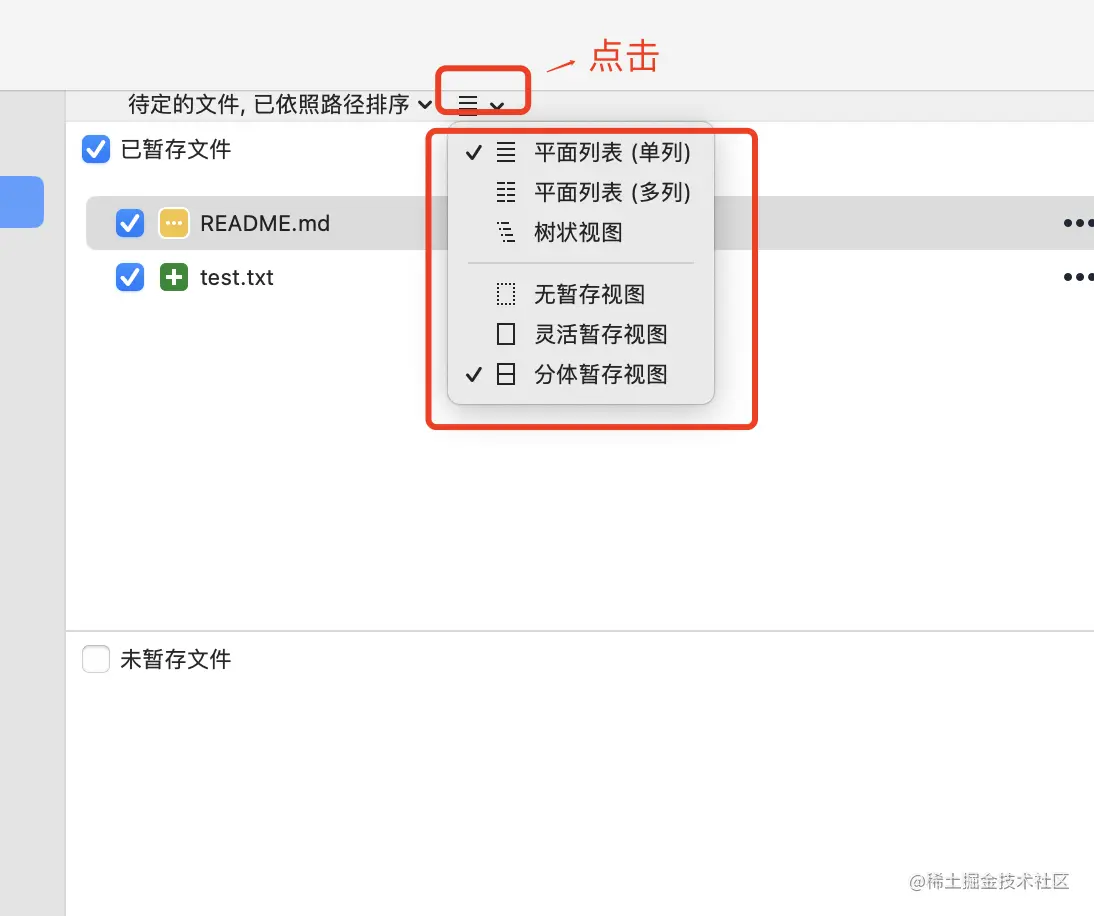 文件区域设置。一般情况下 使用分体暂存视图更清晰。