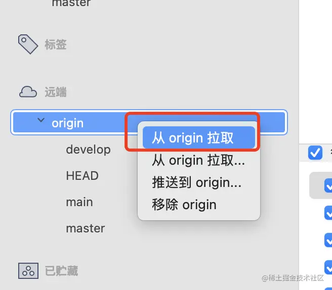 1、在远程分支右键,选择从origin拉取即可,获取远程分支