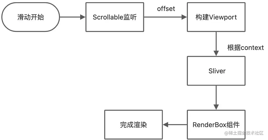 - Scrollable 监听到用户滑动行为后,根据最新的滑动偏移构建 Viewport 。