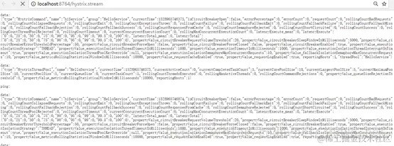 直接在浏览器中输入localhost:8764/hystrix.stream可以看到ping信息