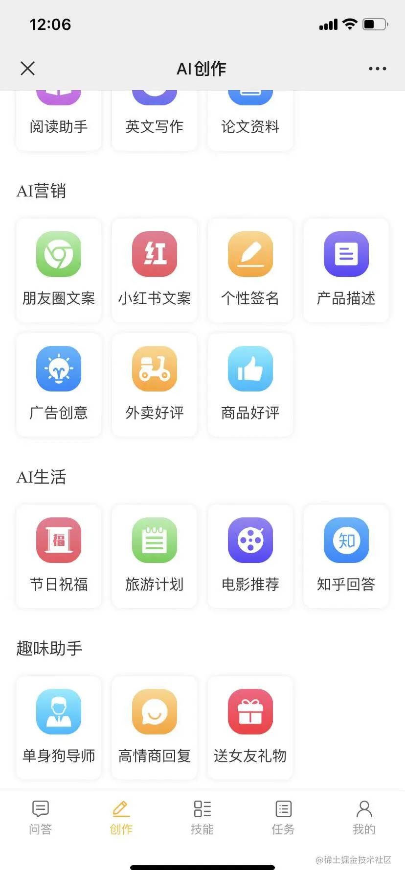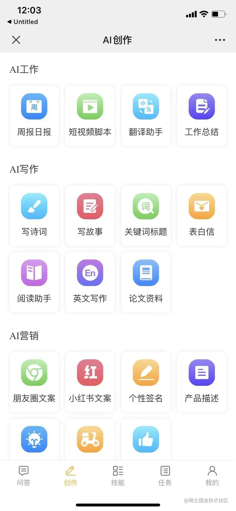 AI工作、AI写作、AI营销、AI生活、趣味助手等功能