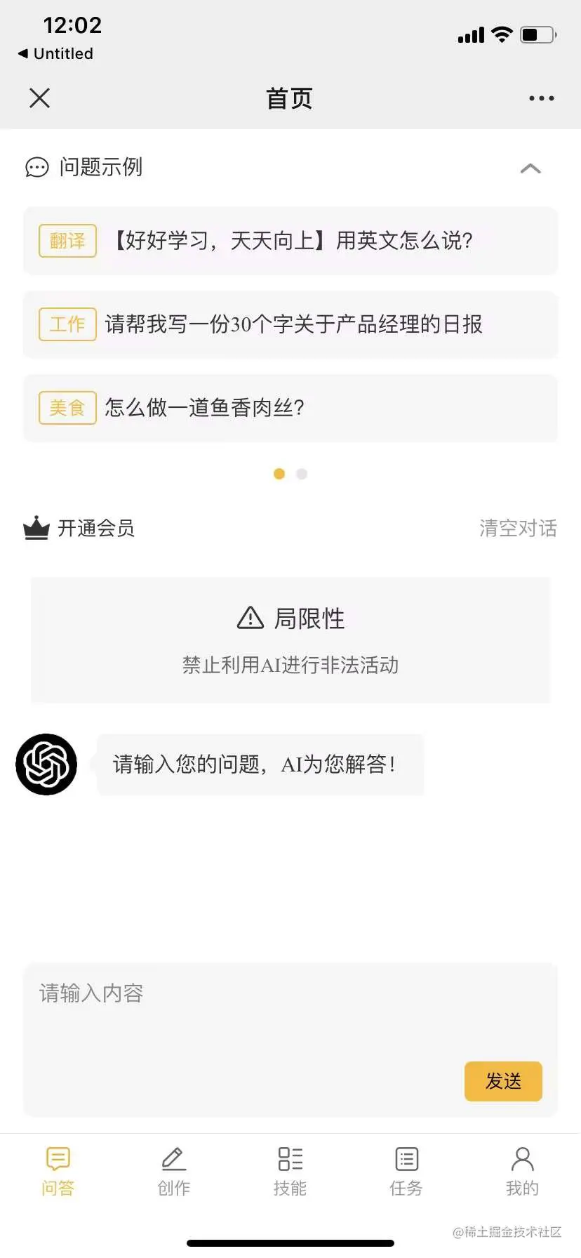 首页简洁明了,直接输入问题,可快速回答