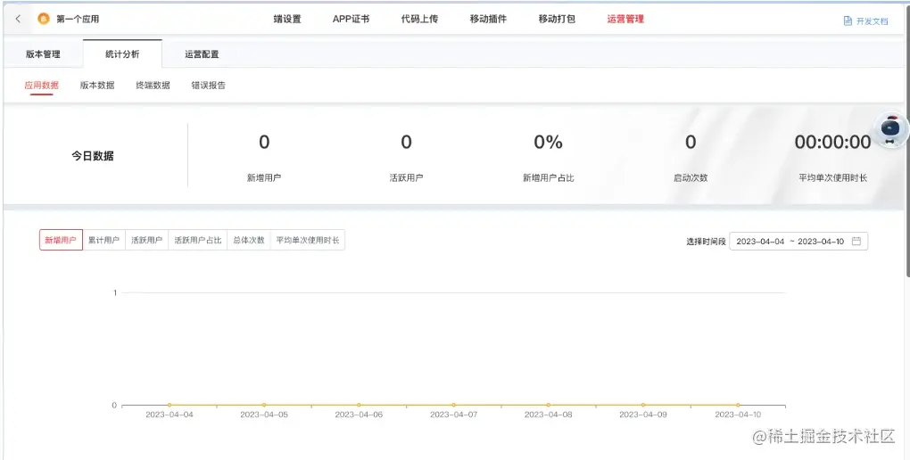 统计分析:统计了一些常用的应用数据,以可视化图表形式展示出来,供运营人员直观的查看