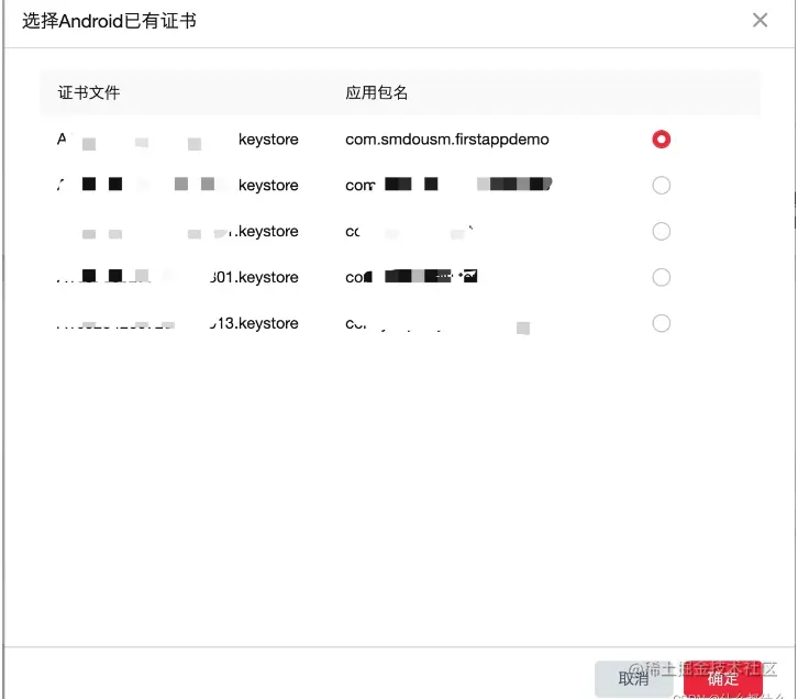 PS: 可以点击「选择已有证书」按钮,选择已经上传过的证书