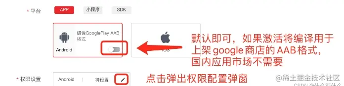 其中「平台」类型选择默认的APP即可,并点击选择 「Android」