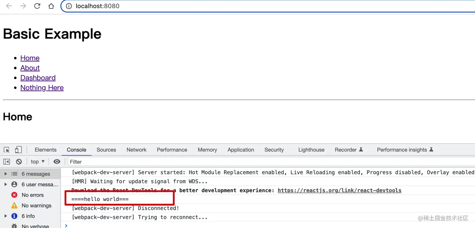 同时去检查下页面展现和控制台输出,与预期相符: