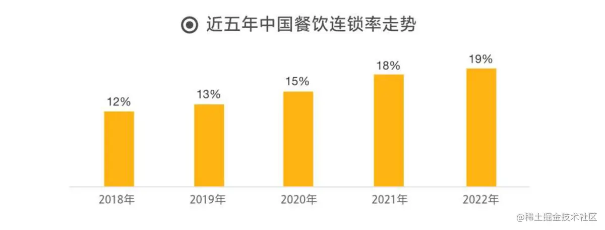 (餐饮连锁率逐年提高。图源:《2023中国餐饮加盟行业白皮书》)