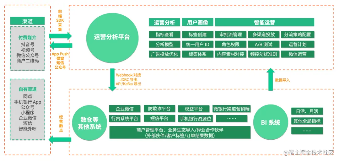 利用互联网、移动设备和大数据等技术,构建基于数字化的全渠道、全流程、全周期的金融服务运营平台,着力整合数仓等各类系统,实现数据资产的统一管理,为运营分析平台奠定全渠道统一应用的数据基础。