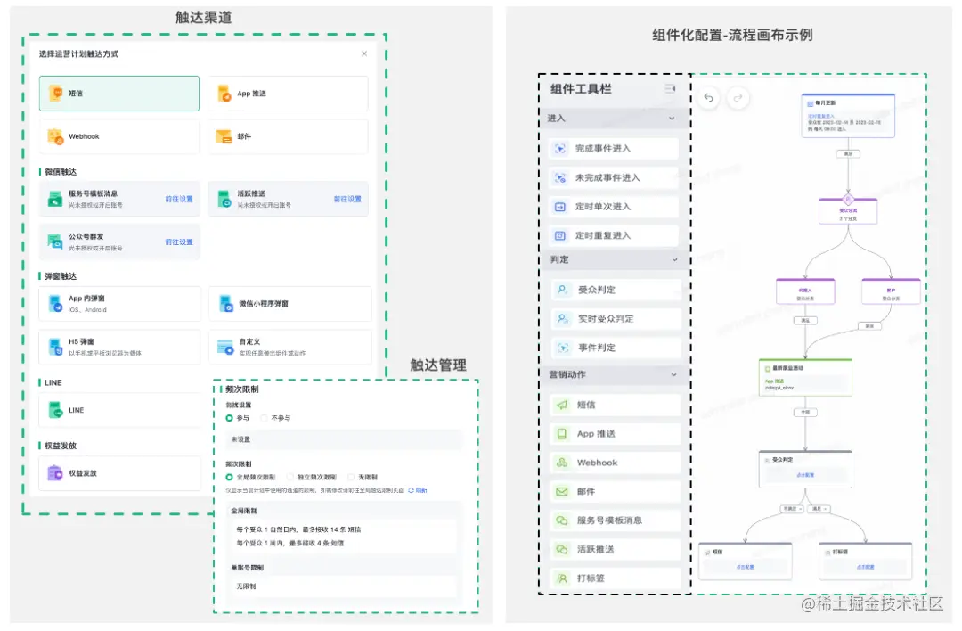 基于场景下的多样化渠道触达,能够促使客户在多渠道留痕,体验产品和服务,进而提高留存率;还能利用不同渠道的特性,触达并召回流失用户。