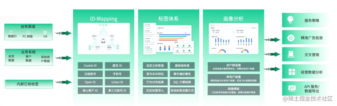 通过构建多元化的金融渠道矩阵,基于各渠道的数据洞察,银行可以把握用户画像和最佳营销时机,输出更符合需求场景下客群的运营策略,有效提高客户满意度和忠诚度。