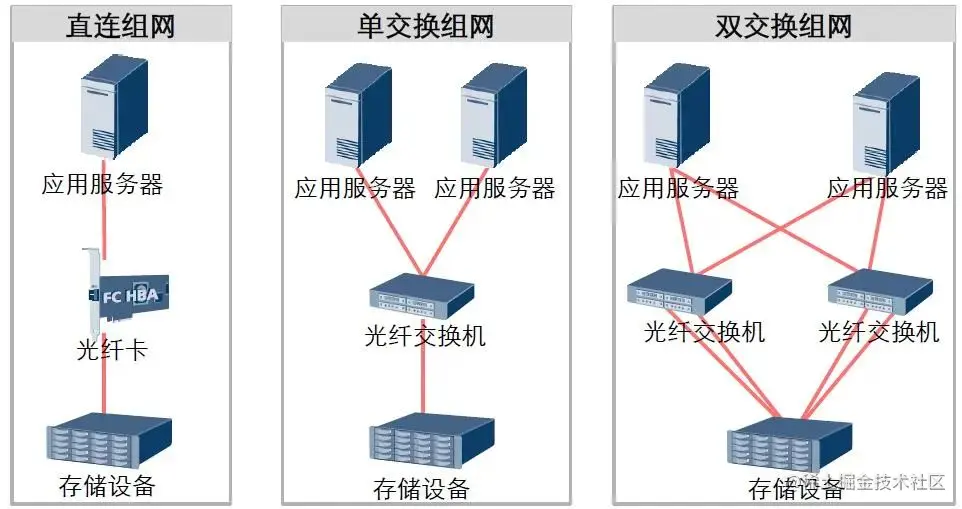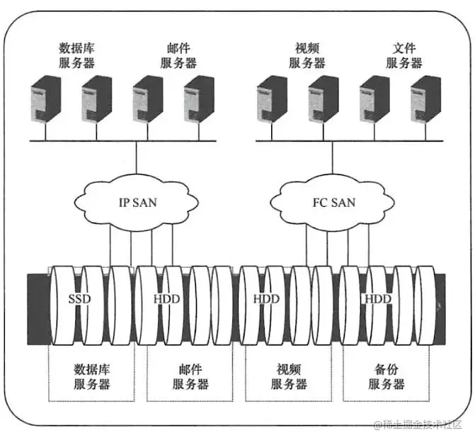 根据不同的实现形式,SAN可分为FC-SAN、IP-SAN和SAS-SAN三种。它们分别采用了不同的通信协议和连接方式。