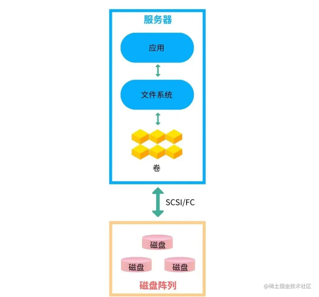 其中的SCSI,用于服务器内部I/O通道和存储系统I/O通道之间的连接。再通过I/O通道协议和SCSI协议的转换来传输数据。