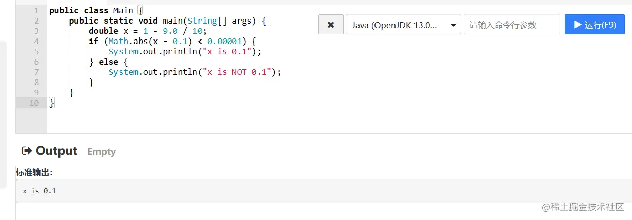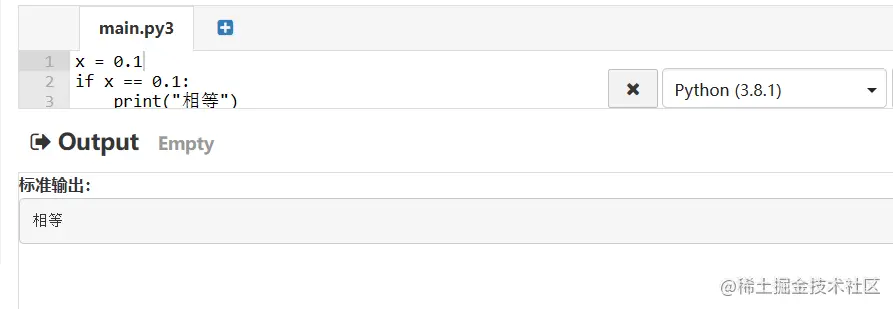 - 上述结果的原因已经讲过此处不再赘述,那么使用差值小于某个临界值来判断: