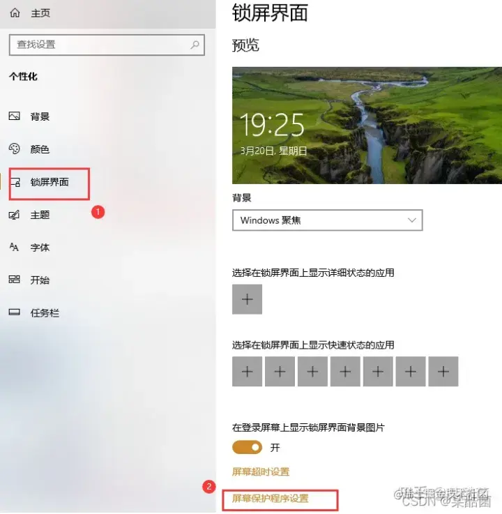 右击桌面--个性化--锁屏界面--屏幕保护程序设置