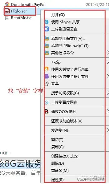 如果右击Fliqlo.scr可以找到“安装”字样,直接安装就可以了