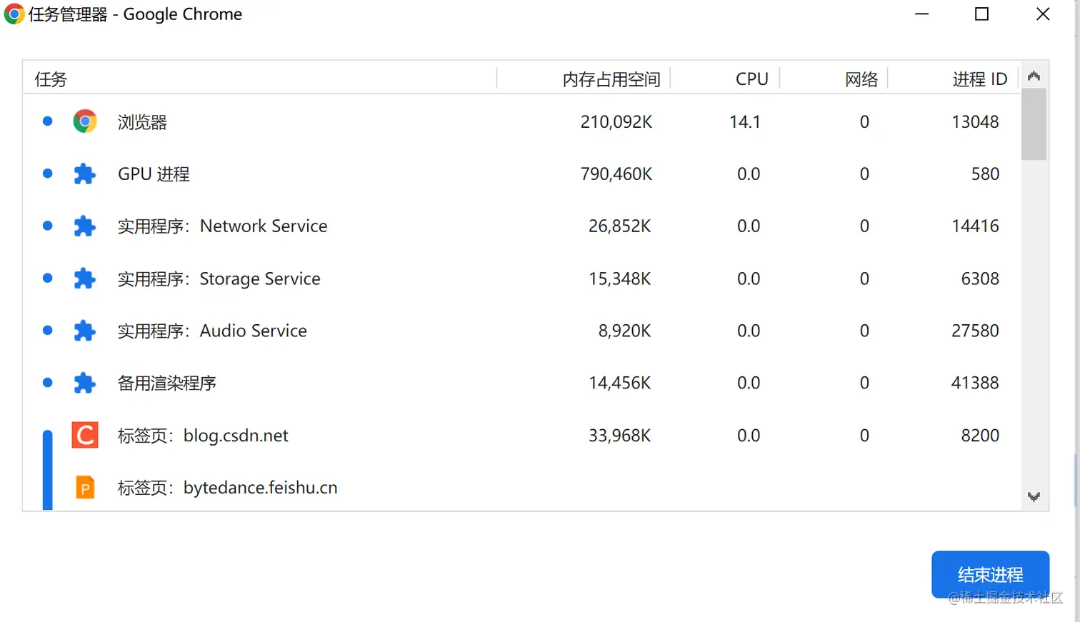 查看 Chrome 中正在运行的进程数,点击右上角的选项,菜单图标→选择更多工具→任务管理器。