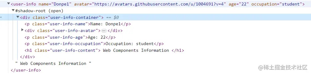 同时,通过控制台的结构我们可以清晰的看到其中的shadowRoot对组件结构与DOM进行了隔离,如下: