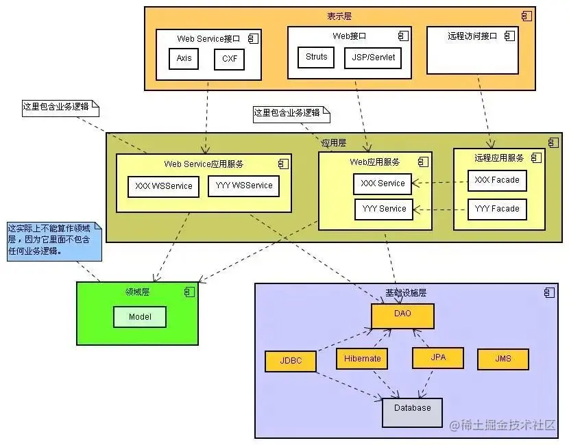 表示业务逻辑、业务场景和规则。该层次会控制和使用业务状态,即使这些状态最终会交由持久化层来存储。总之,该层是软件核心。