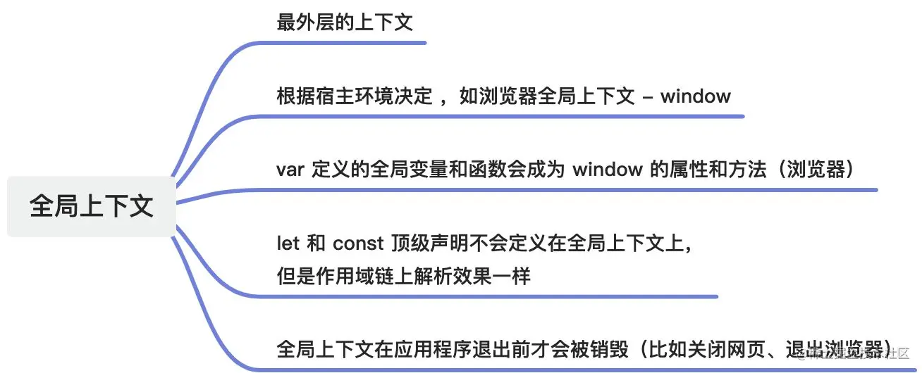 JS 中的执行上下文(简称 上下文)决定了变量或函数可以访问哪些数据,以及他们的行为,每个上下文都有一个关联的变量对象(variable object)。所有的上下文中定义的变量和函数都存在于这个对象上(代码无法访问变量对象,但后台会用到它)