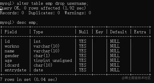 alter table table-name drop 字段名;