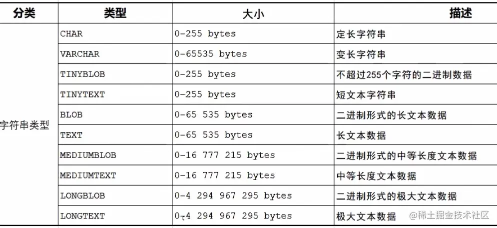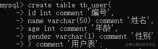 字段1 字段1类型 comment'' ,