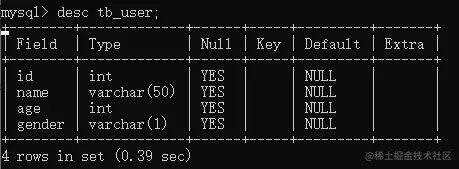 查询表结构