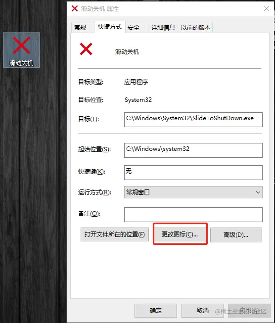 我们还可以给这个快捷方式换一个比较显眼的图标,以免不小心点到了,步骤如下,右键点击这个文件,点击更改图标,选择完成后点击确定即可。