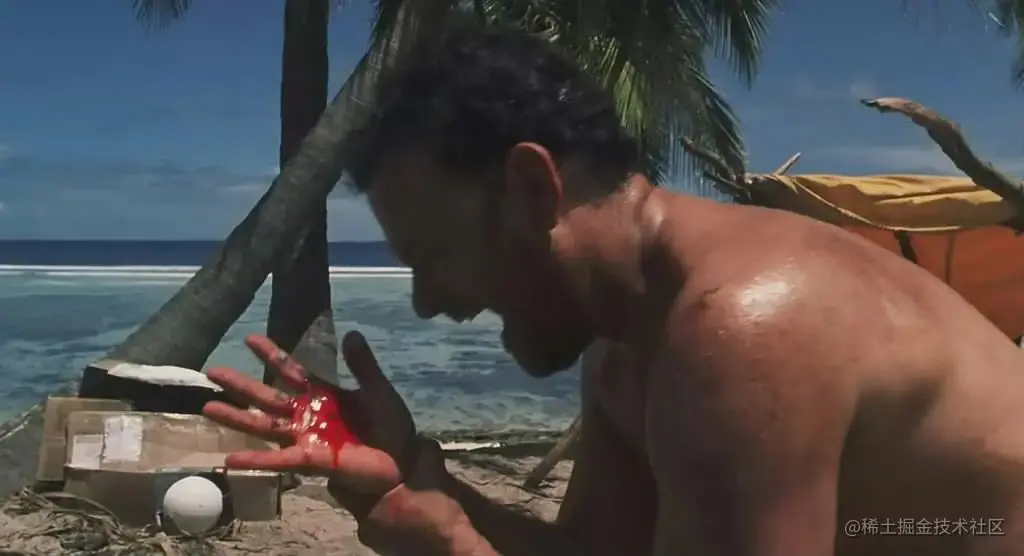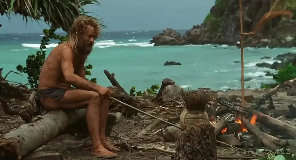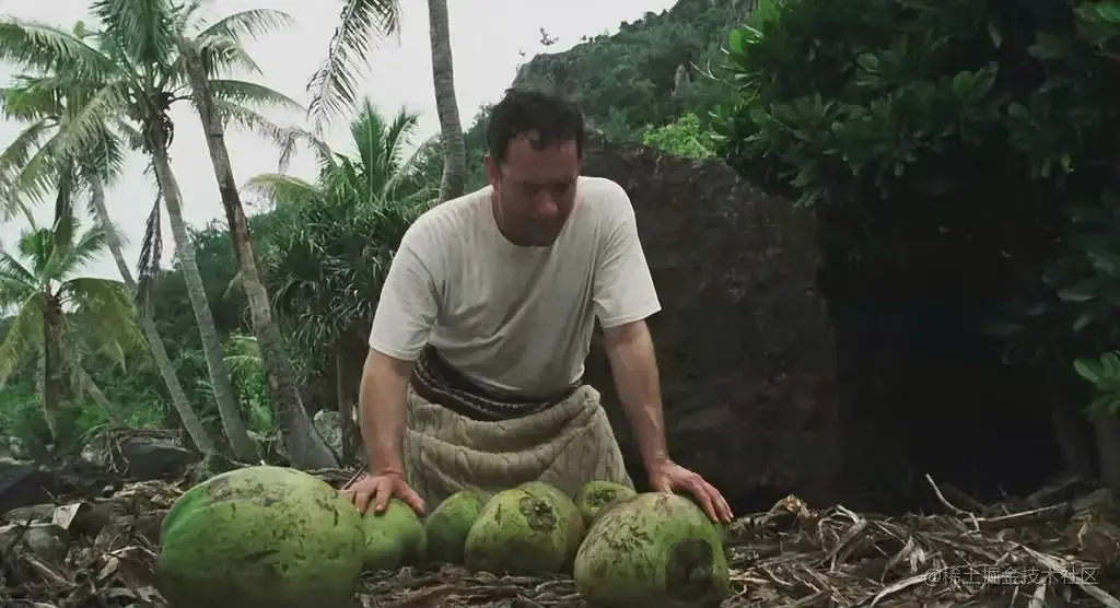 这几天,查克靠着岛上的椰子为食物,勉强度日。