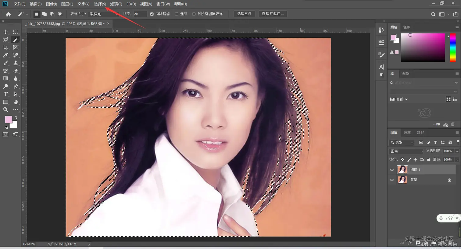 第六步:通过魔棒选择工具选中白色部分
