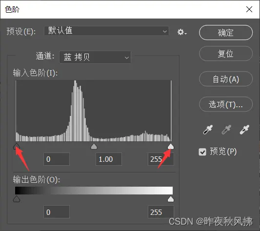 第三步:点击图像——调整——色阶,也可以直接按快捷键ctrl+L,左右两边的黑白对比度调到合适的位置