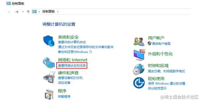 1、首先点击电脑的开始菜单,然后打开控制面板,接着点击“查看网络状态和任务”。