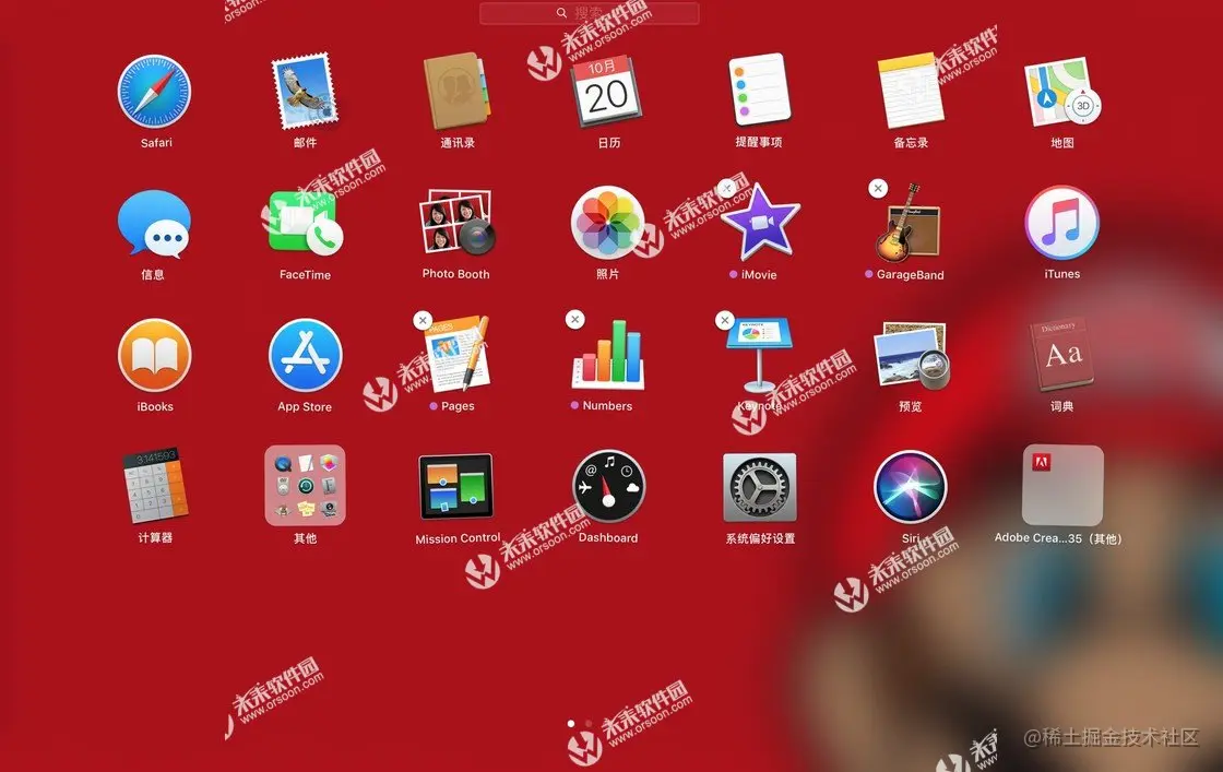 在 macOS 中,点击 Dock 栏中的 Launchpad 图标,或者点击快捷键「F4」,就可以看到已经安装的所有应用,界面和 iOS 的桌面操作相似,可以左右滑动,将一个应用拖到另外一个应用上就可以新建一个文件夹。如果 Dock 栏中没有 Launchpad 图标,可以在 Finder 中的应用程序文件夹中找到,并拖到 Dock 栏中。