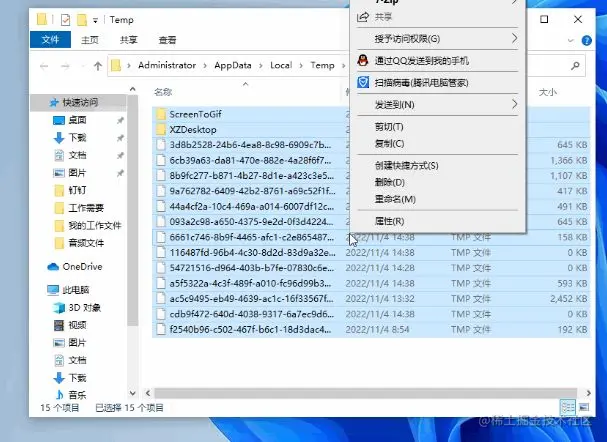 再次打开运行窗口,输入代码“%temp%”,可以跳转到【Temp】文件夹,主要是应用程序留下的临时文件,当计算机空间不足时,可以删除所有文件。