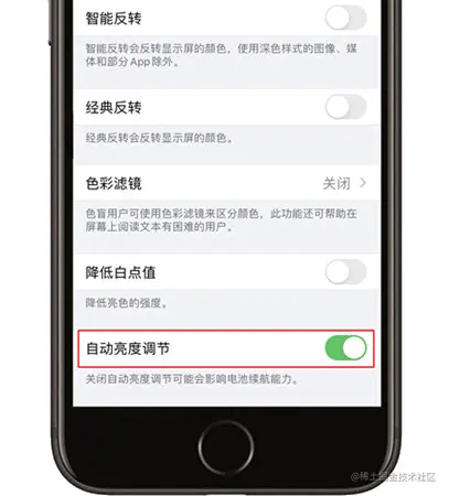 果粉们应该都知道,在iPhone中有一个“自动亮度调节”的功能,开启后设备会根据周围的光线条件来调整屏幕亮度。