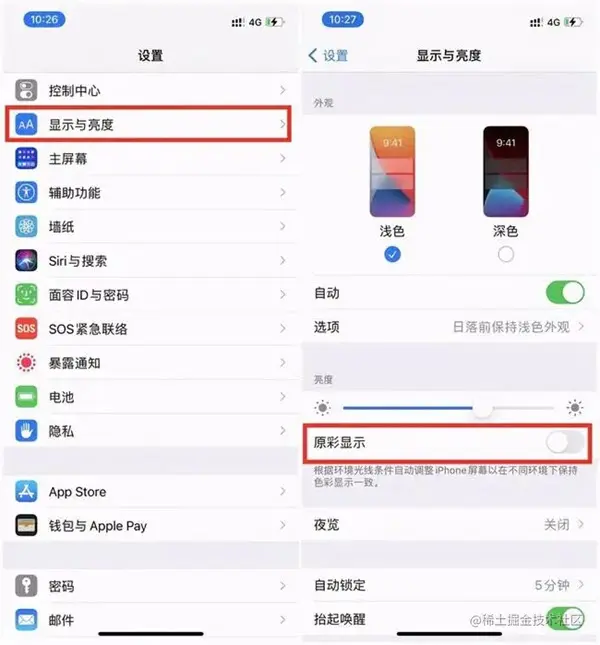 此功能会根据周围的环境光线自动调节屏幕显示的冷暖效果。如果你不习惯使用,可以进入设置 - 显示与亮度 - 原彩显示将其关闭。