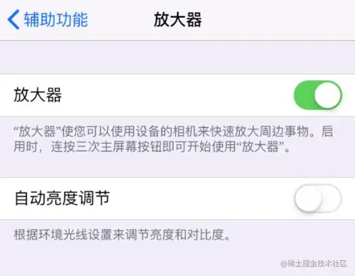 如果你在使用此功能时,发现屏幕显示忽明忽暗,可以在iPhone的设置 - 辅助功能 - 放大器关闭该功能。
