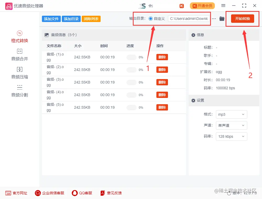 步骤3,先设置输出目录,用来保存转换后的文件。最后点击【开始转换】按键启动音频格式转换,剩下的事情就交给软件来完成了。