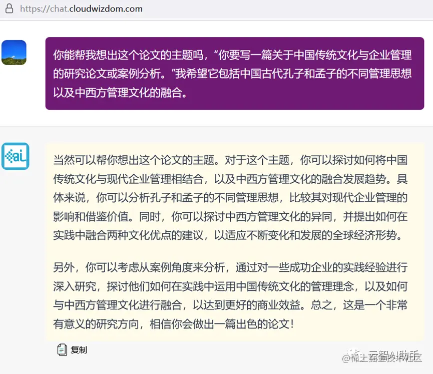 几秒钟之内,人工智能就产生了一个回复,为我提供了论文的主题、文章重点以及可以在论文中包含哪些信息的见解和案例。