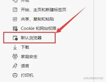2.在左边菜单中选择“默认浏览器”;