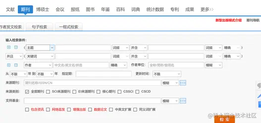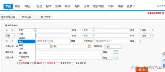 要想得到精准的结果,需要使用高级检索的功能,打开界面如下。