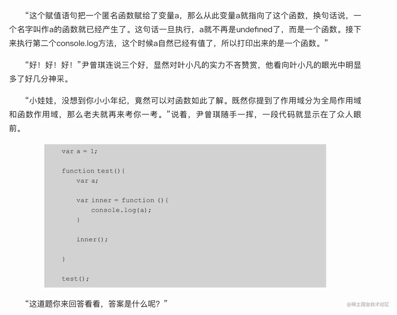 正是通过这困难重重的 JavaScript 函数七重关,让叶小凡声名大噪,也让青山院掌尊林元请对其大为赏识。