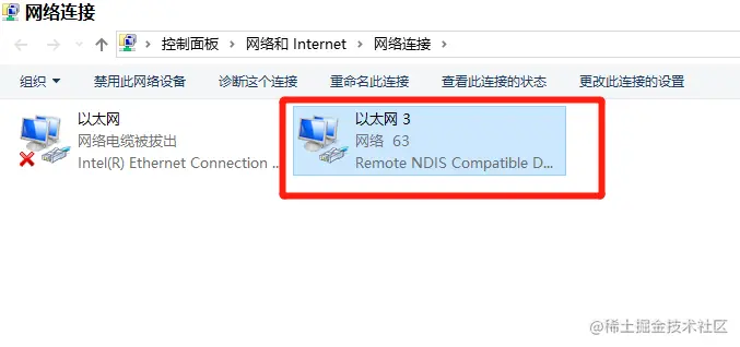 电脑如何通过数据线连接手机网络?(USB共享网络) 一眉师傅 2023-05-10 1,007 阅读1分钟 第一步:用数据线连接手机和电脑的USB插孔,这时候电脑网络连接的状态是这样。。。 第二步:打开手机设置,找到移动网络共享。。。打开USB连接 第三步:电脑上网络图标。。鼠标右击。。。打开网络和共享中心。。。 鼠标左键点击更改适配器设置。。。。 第四步:来到网络连接界面。。。第二个以太网图标上。。。鼠标右键点击禁用,就变成了启用。。。启用之后就完成了USB网络连接。。。。。。 最后电脑上网络连接图标没有红色错号。。。。。